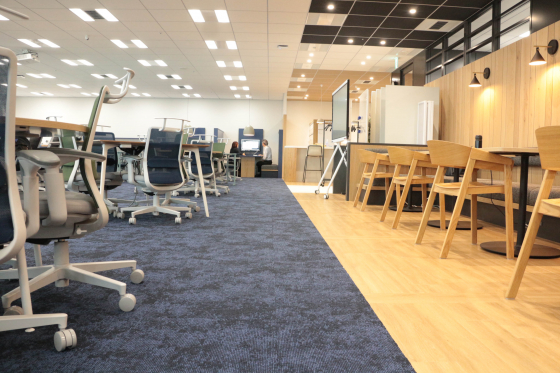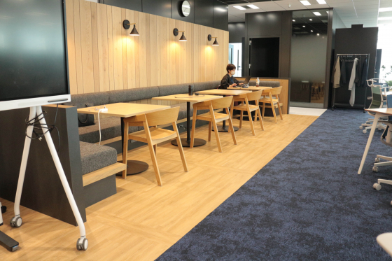 という 3 つの要素を組み込み、2020年から導入しているフリーアドレスの継続、バラエティに富んだワークスペース、フレキシブルな家具を利用することによる交流スペースの確保やリフレッシュスペースの設置など、すべてにおいて「ES」への想いがこめられています!