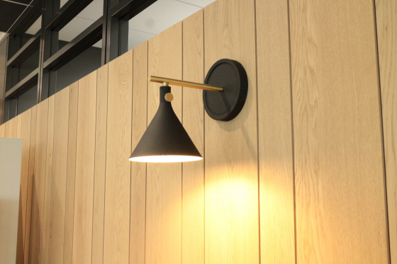 丸いテーブルや四角いテーブル、1人サマ用のカフェっぽいコーナーとは、天井や床で空間を仕切っただけでなく、照明でも雰囲気を変えています。