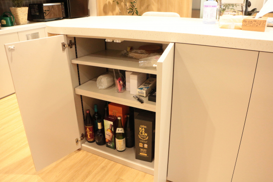 それは、補充のシーンを思い浮かべればわかります!ここはパントリーと言っても執務エリア内、しかも奥のほうに位置していますから、水ボトルの補充のたびに配達の人が執務エリアに入ってくるなんてちょっと煩わしいかも…だから、廊下にあるのはとっても機能的だと感じました!