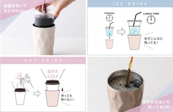 いつまでも冷たいままドリンクを美味しく楽しめます。