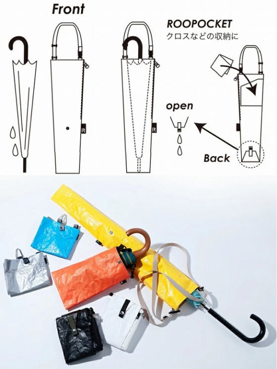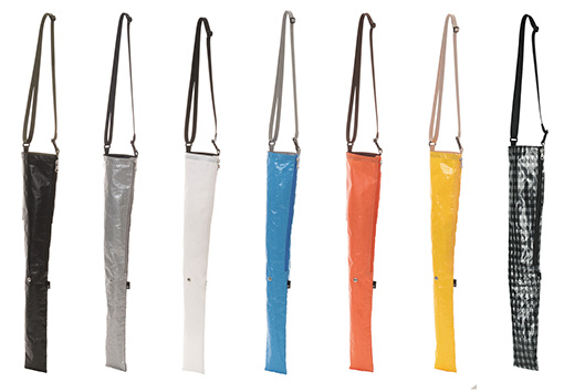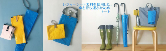 レジャーシートの素材でできた、傘専用のトートバッグです。これなら周囲を濡らす心配なし!肩から掛けることができるので両手が空いて、つり革にもつかまりやすいですね。長い傘用と、折りたたみ傘用があります。
