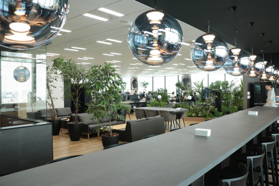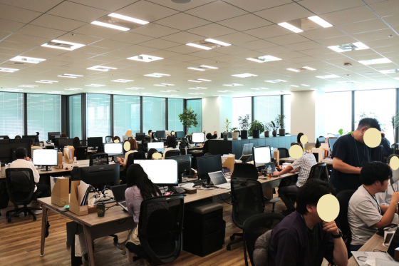 2008年設立、現在のオフィスは2021年12月に移転したもので、そろそろ3年が経過しようとしていますね。従業員数は現在約380名で、そのうち150名弱がこの東京オフィスに在籍しています。さらにその半数ほどが、リモートと出社のハイブリッドスタイルであるシステム事業部の社員になる同社が、コロナ禍を経てもなお増床移転した背景にはどのような考えがあったのでしょうか。また、社員のエンゲージメントをアップする秘策となったオフィスの仕掛けは…?