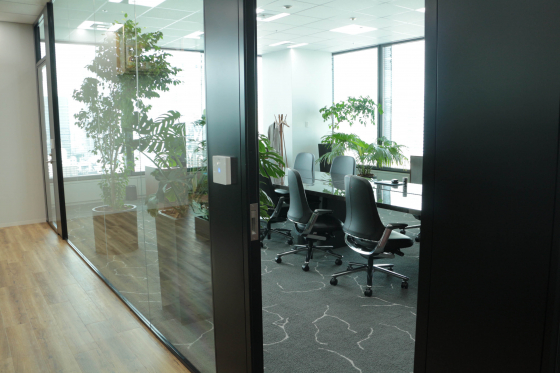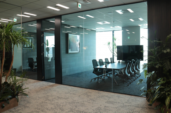 大きなガラスが印象的な会議室はこのエリアだけで8室あります!ってか一つひとつが広い!