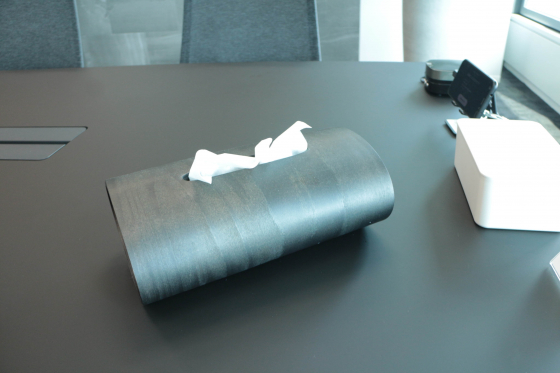 なんだかティッシュケースもめちゃカッコいい。湾曲した木でできてて揺れる!