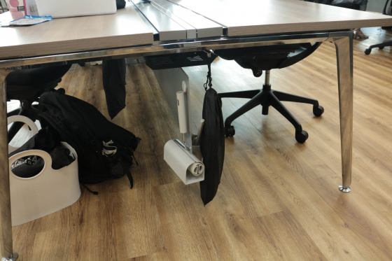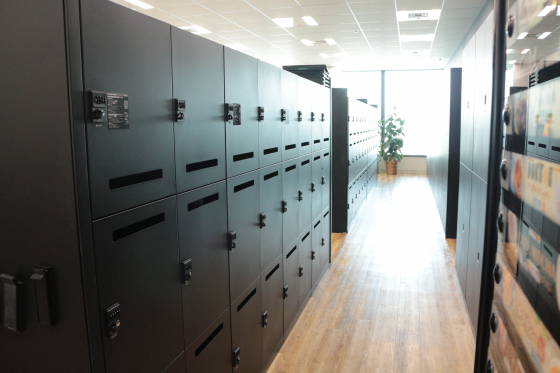 執務スペースに入りましたー 黒いロッカーが全社員分、ずらりと。