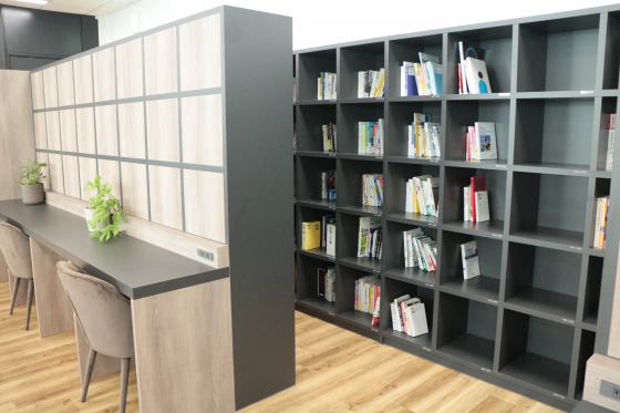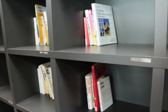 図書貸出制度があって、本気で図書館風なナンバリングがされてます!わかりやすい!