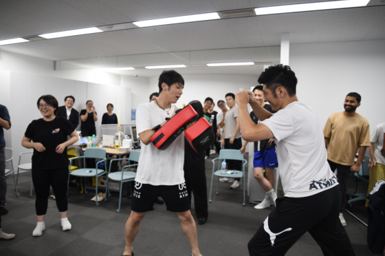 格闘技研修をきっかけに格闘技ファンが増えて、会社で観戦会をしたり、スポンサー選手をみんなで応援したり。部署を超えた交流も自然に増え、オフィスの雰囲気が明るくなったそうです。