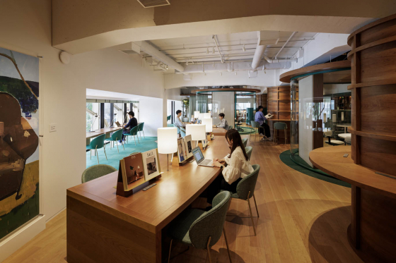 CCCが運営するコワーキングスペース&カフェラウンジで、2019年11月に第一号店がオープンしました。ワークスペース、カフェ&バー、ライブラリー(書店)、コミュニティイベントの4つの機能を備えた時間課金制のスペースで、働くことはもちろん、自由に時間を過ごせる場所なのです。